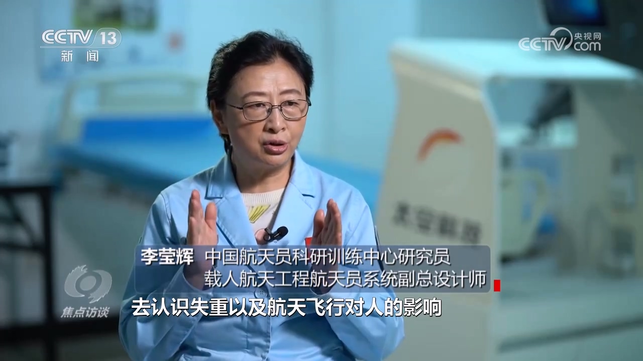 中国航天员科研训练中心研究员、载人航天工程航天员系统副总设计师李莹辉:“我们怎么样从生理角度和临床角度去认识失重以及航天飞行对人的影响,帮助我们更好去做失重防护的方案,加深对人、对生命现象本质的认识、理解和考虑,怎么样利用太空资源为人的健康服务。”