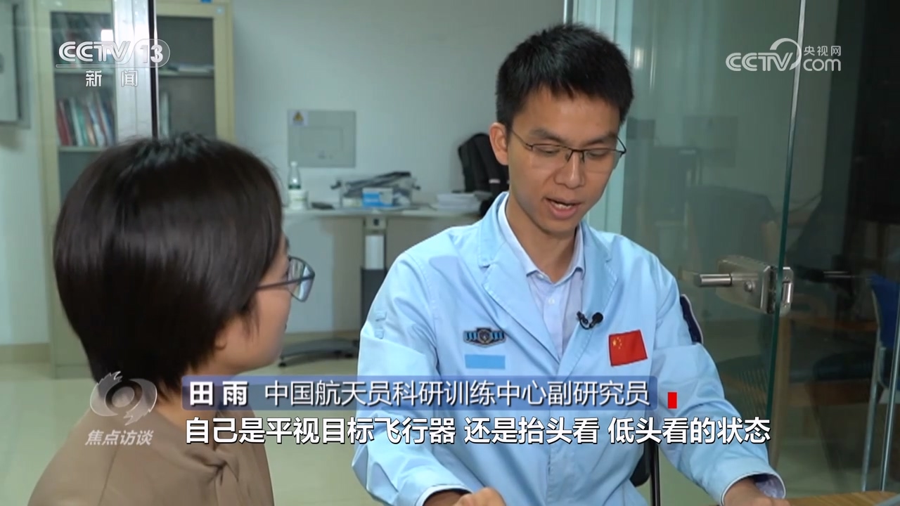 中国航天员科研训练中心副研究员田雨:“在太空中,航天器是在三维空间,判断姿态偏差十分重要,航天员要确定自己是平视目标飞行器还是抬头看、低头看的状态,这就需要想象自己是从哪个视角观察,所以我们抽象出一些三维图案,把它放到一个空间中,然后让航天员去判断是从哪个视点观察的。”