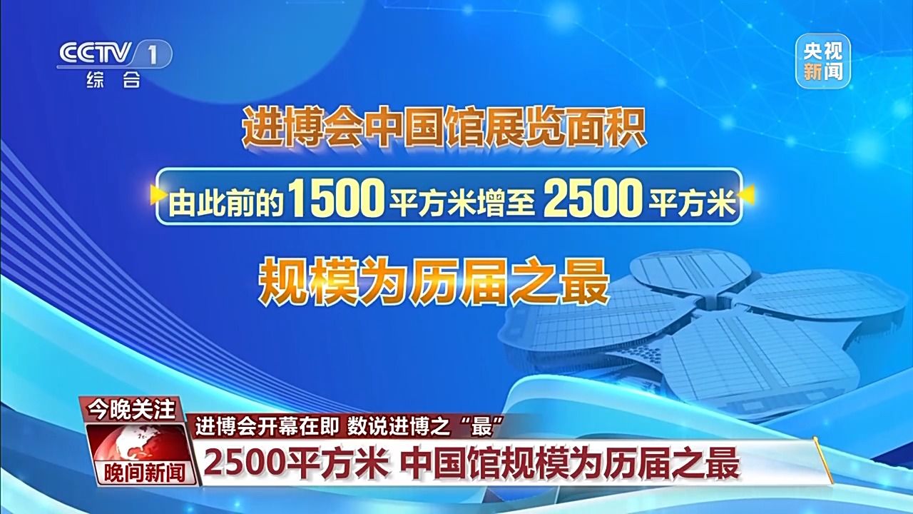 本届进博会企业展的展览面积达到36.7万平方米,而进博会的中国馆也升级扩容,展览面积由此前的1500平方米增至2500平方米,规模为历届之最。
