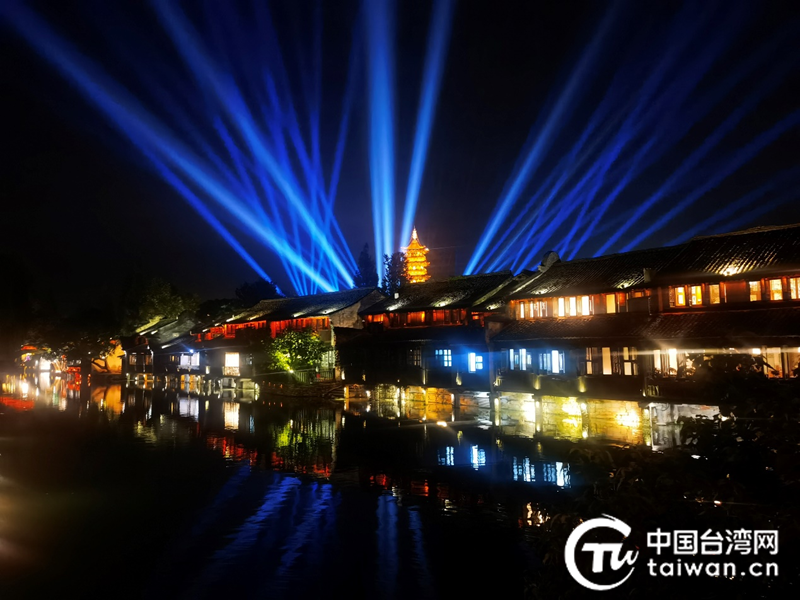 2023年世界互联网大会乌镇峰会举办期间的乌镇夜景。(中国台湾网 晋雅芬 摄)