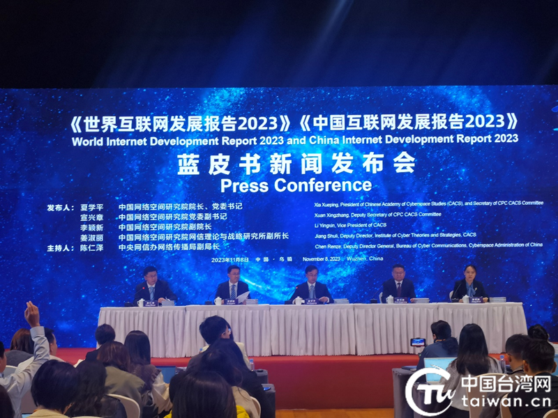 《中国互联网发展报告2023》和《世界互联网发展报告2023》蓝皮书发布现场。(中国台湾网 晋雅芬 摄)