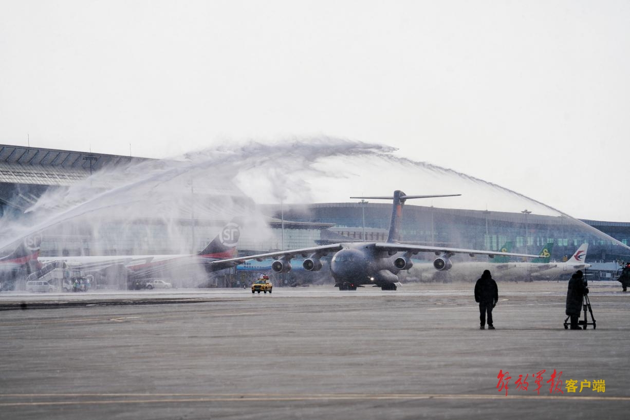 运-20专机通过“水门”。中国军网记者刘丹 摄