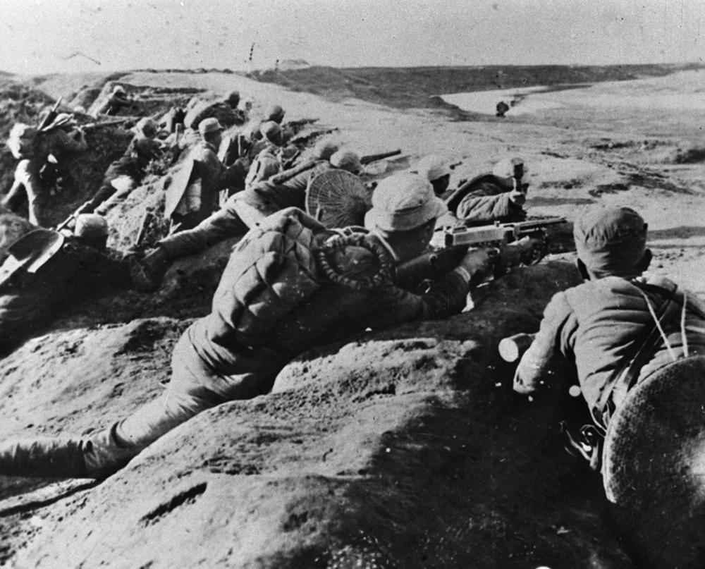↑ 抗日战争期间,新四军在苏北冰天雪地中行进。