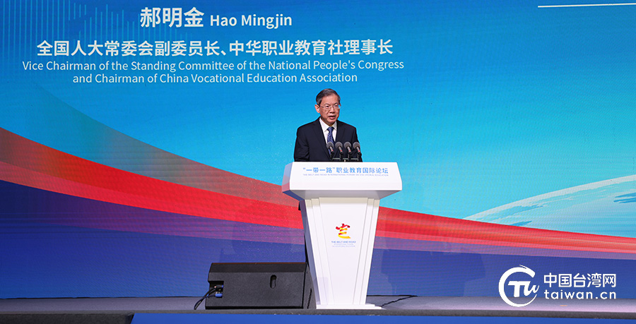 全国人大常委会副委员长、中华职业教育社理事长郝明金出席论坛开幕式并作主旨演讲。(中国台湾网 麦旭涛 摄)
