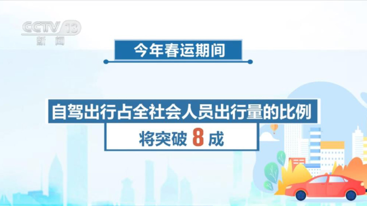 今年春运期间,全国跨区域人员流动量预计将达90亿人次,是2023年同期的近两倍,创历史新高。高速公路及普通国省干线非营业性小客车人员出行量约有72亿人次,全国公路网每天出行的日均车流量将达3720万辆,自驾出行占全社会人员出行量的比例将突破八成。
