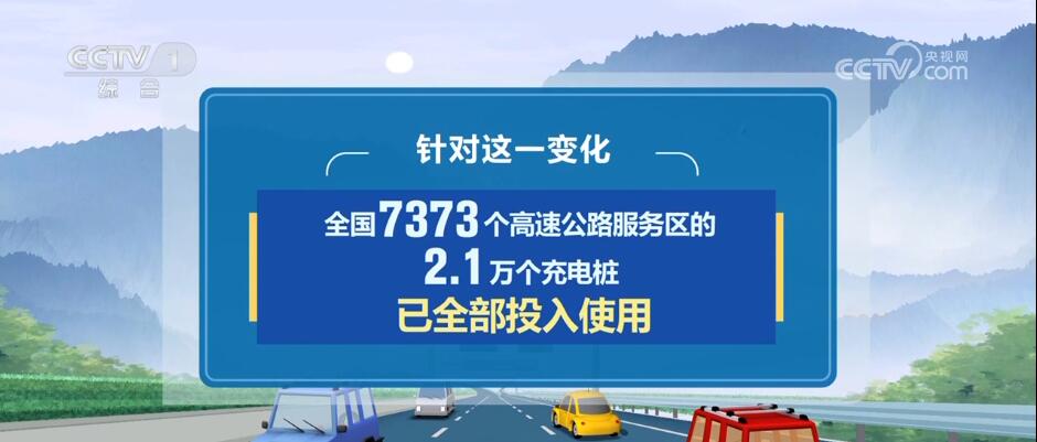 今年公路出行还有一个新变化,就是在小客车出行当中,新能源车辆占比增多。针对这一变化,目前,全国7373个高速公路服务区的2.1万个充电桩已全部投入使用。