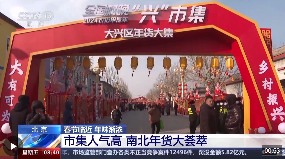 大兴区黄村镇镇长 陈杰:我们在活动现场设置了近百个展位,汇集了全国各地南北方特色的年货,同时我们也邀请了各地的美食制作单位,来这儿能够品尝到天南海北各地特色的美食。