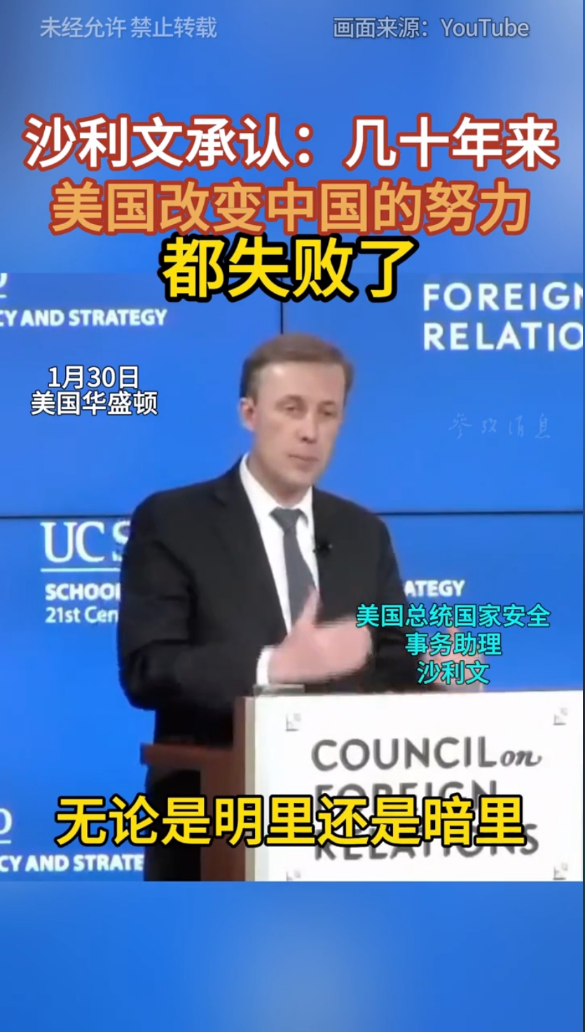 沙利文承认:几十年来,美国改变中国的努力都失败了