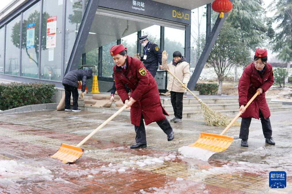 近日,安徽省合肥市迎来低温雨雪天气,铁路、轨道交通、交警、供电、供水、市政、环卫、社区等各部门工作人员冒着风雪坚守岗位,保障交通运输及市民出行安全。