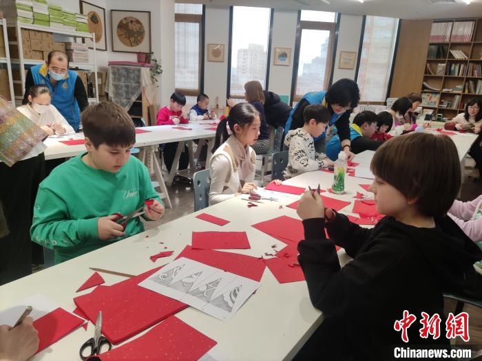 2月4日,“感知中国 美美与共”中外儿童喜迎龙年新春文化交流活动在北京举行。图为中外儿童体验剪纸。中新网记者 林世雄 摄