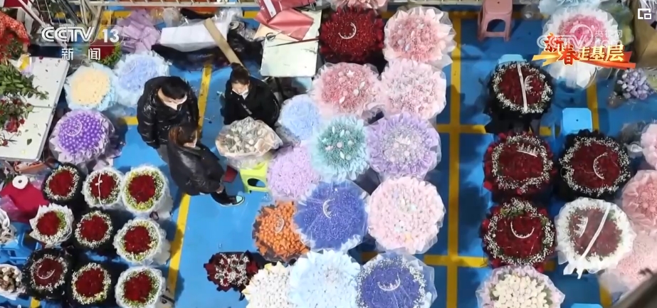 春节期间五彩缤纷、种类繁多的年宵花成为主角,玫瑰、腊梅、郁金香都是市场“宠儿”。这几天,周琦他们的日订单量已经从2500单增加到3000多单。