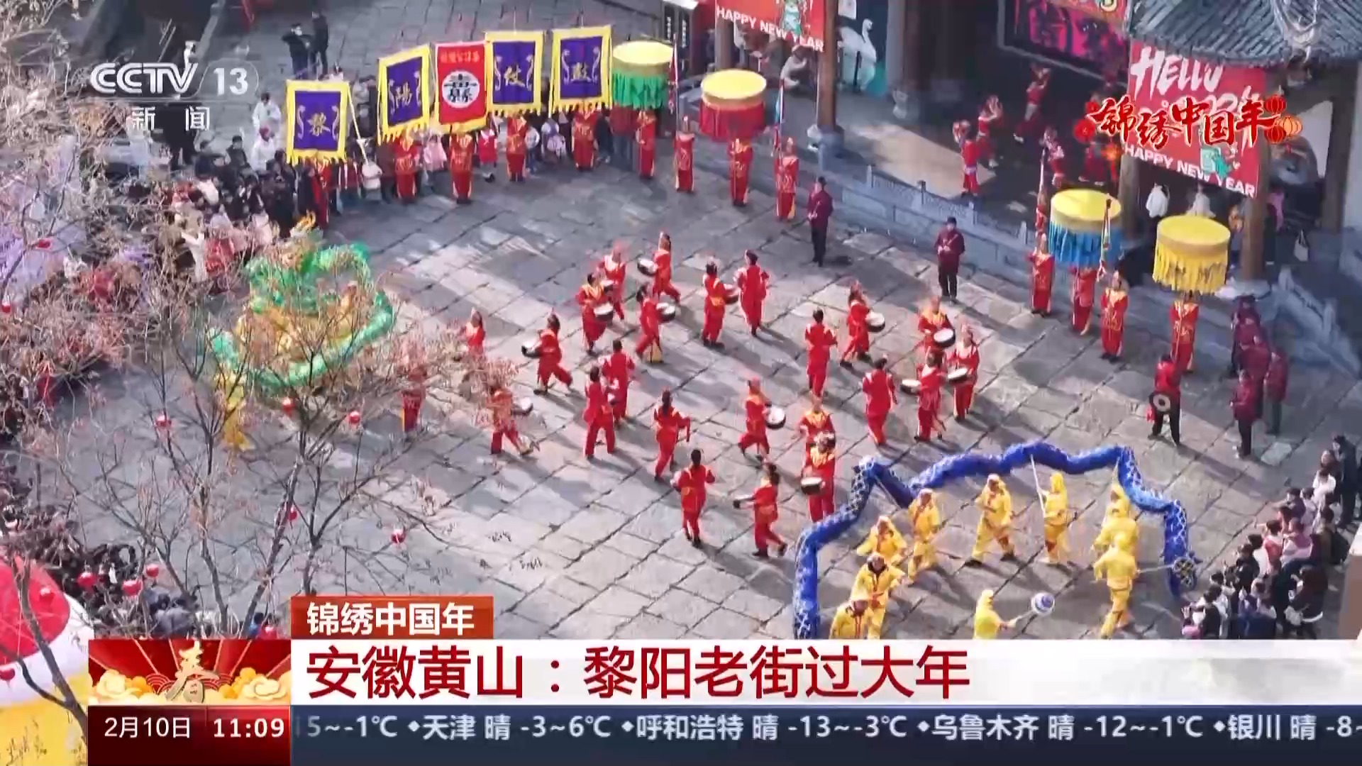 我身后,黎阳仗鼓已经敲响了,这是当地传承有1500多年历史的一种民俗舞蹈。历史上,这种仗鼓是在得胜之日才会奏起的,表示欢庆胜利,用仗鼓壮军威,用仗鼓庆胜利,所以也叫得胜鼓,后来,在祭祀、庙会等等一些重要的场合,黎阳仗鼓都成为当地一种重要的庆祝方式。当地流传着这样一句话,“听见仗鼓响,就往黎阳跑”,如今,它已经是安徽省的非物质文化遗产。