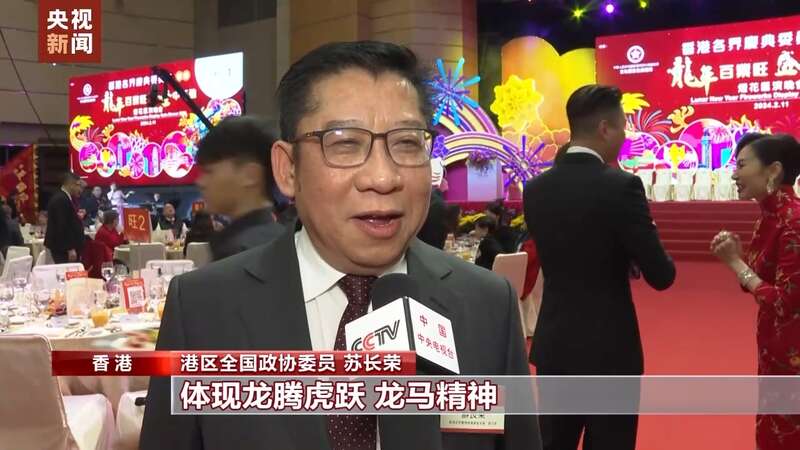香港各界庆典委员会主席 谭锦球:龙就是代表强大和吉祥,我在这里衷心祝愿我们祖国富强,百业兴旺,国安港安,人人安居乐业,我们都有一个丰盛收获的好的一年。(总台记者 金东 冯良辰)