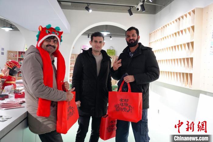 “夜幕下,灯光秀非常精彩,像彩色的雾,漂浮在龙灯背后,很梦幻。”来自巴基斯坦的侯赛因这样描述,他在新年市集上买了一顶龙帽,戴在头上,显得童趣十足。