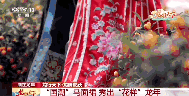 “马面裙”可以说是龙年春节最潮的时尚单品,各式各样的马面裙成为很多年轻人的“新年战袍”。在传统样式和工艺的基础上,不少设计师不断尝试加入新元素、新设计,探索传统服饰和现代生活的相互融合。