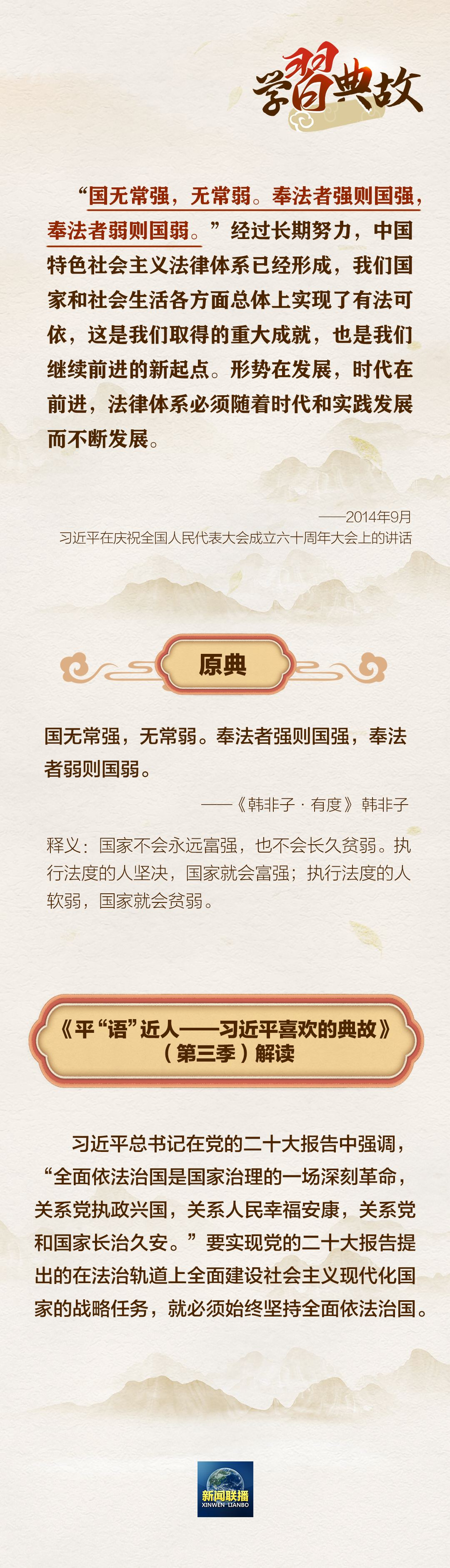 党的二十大报告将法治建设单独作为一个部分进行专章论述、专门部署,这充分体现了以习近平同志为核心的党中央对法治建设的高度重视。围绕“全面依法治国”这一主题,总书记曾讲到哪些典故?一起学习↓↓↓