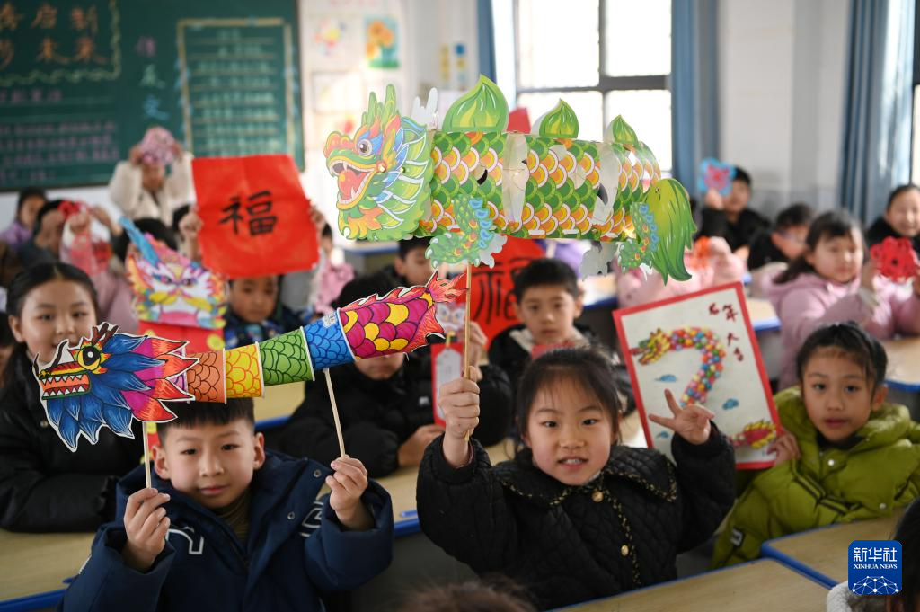 2月25日,河南省沁阳市李商隐小学学生在展示寒假手工作业,迎接新学期的到来。