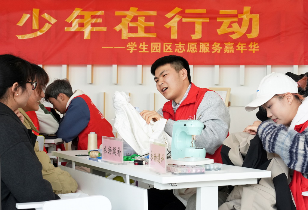 3月3日,西南大学举行“追‘锋’少年在行动——学生园区志愿服务嘉年华”活动。“红帽子”“及时雨”“补衣坊”“西小兰”等多支该校大学生志愿服务队的成员为在校同学提供志愿服务,以实际行动践行雷锋精神。新华社发(秦廷富 摄)