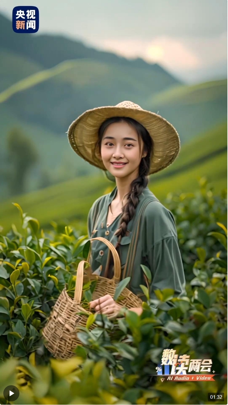 央视新闻AI系列竖屏短视频《AI数“读”两会》带你飞跃田间、漫步乡野,感受中国乡村的勃勃生机!