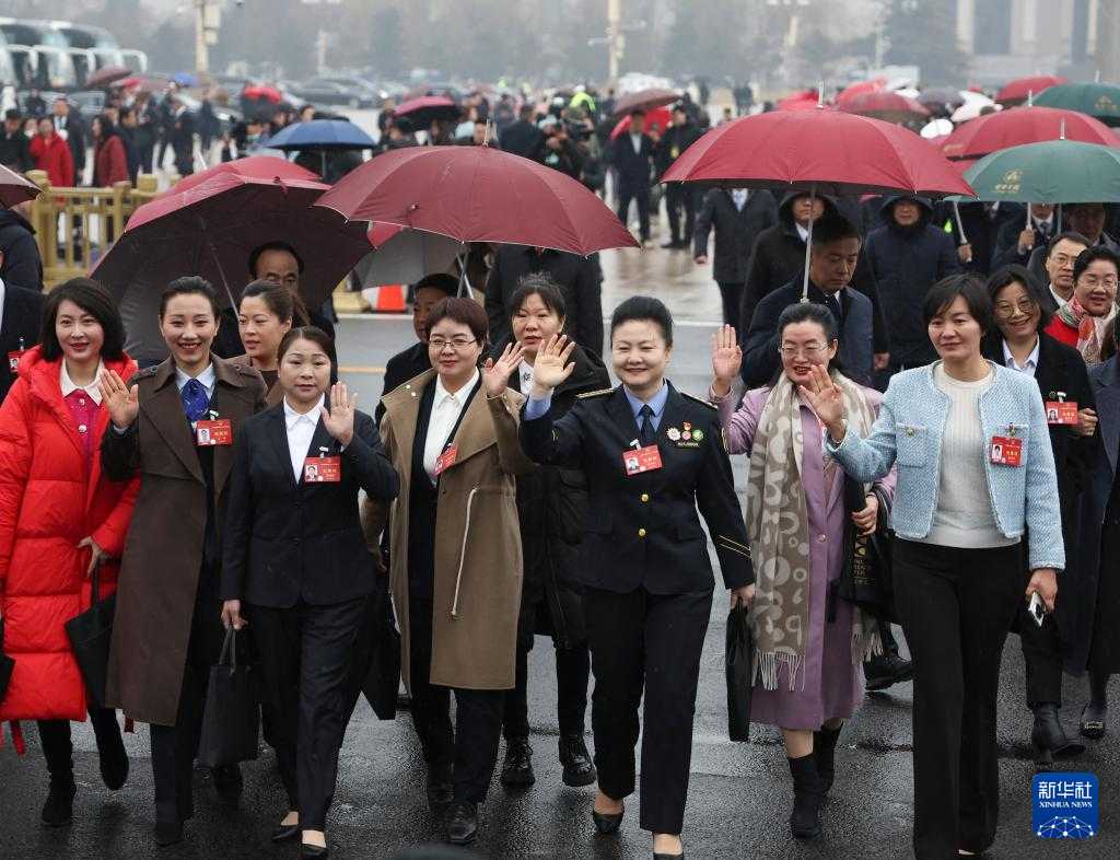 3月5日,女代表们走向人民大会堂,准备参加十四届全国人大二次会议开幕会。