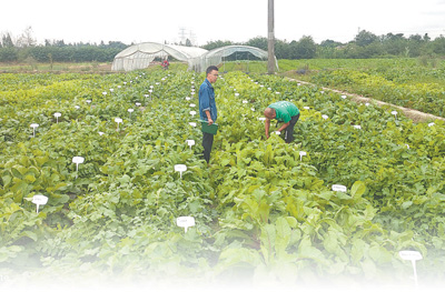 在四川成都市海迈种业科技园内,农业专家在田间进行蔬菜栽培和新品种育种工作。