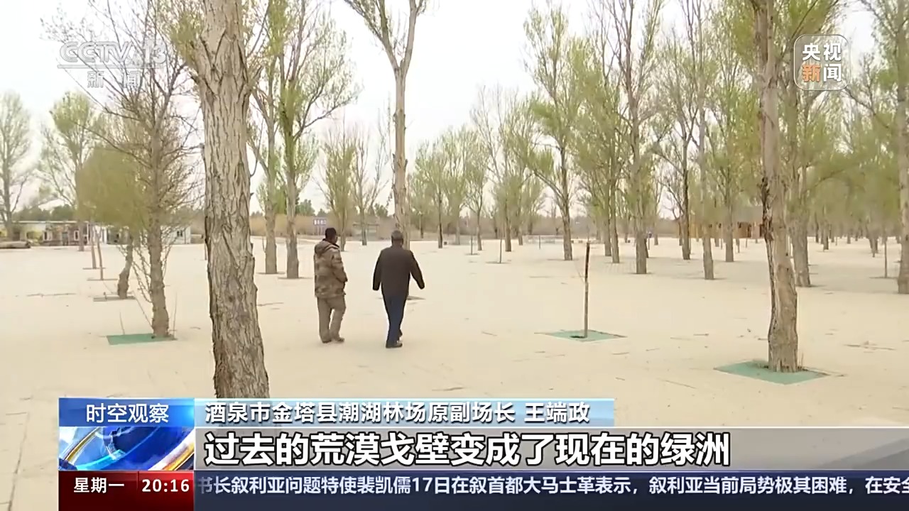 甘肃酒泉金塔县潮湖林场副场长 王端政:过去的沙进人退变成了现在的人进沙退,过去的荒漠戈壁变成了现在的绿洲,现在金塔的生态环境得到了很大的改善。