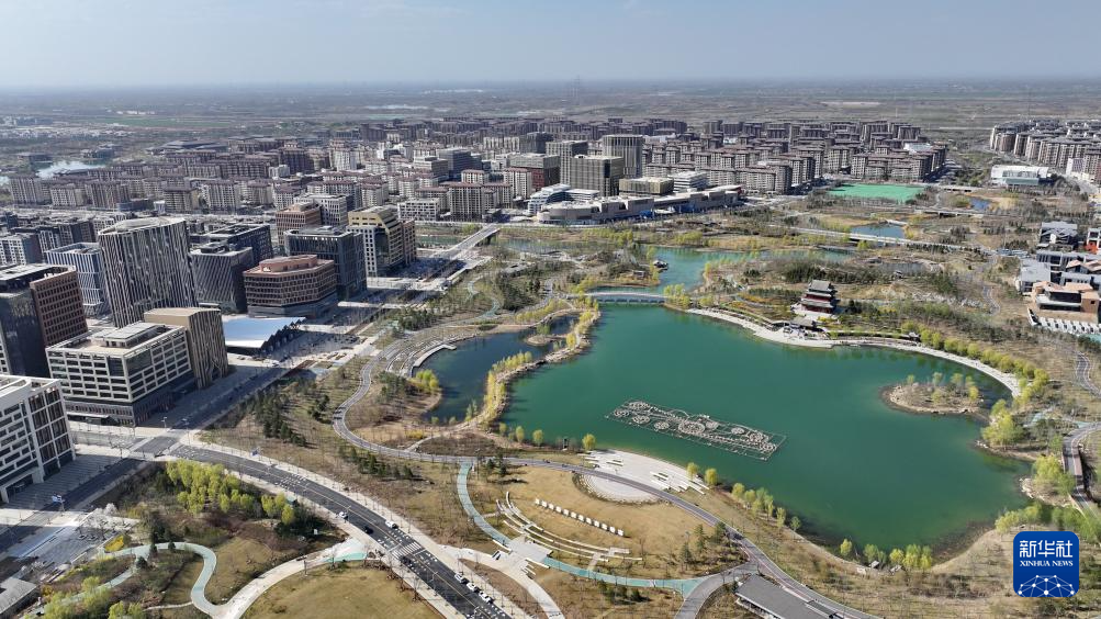 这是雄安新区商务服务中心(3月30日摄,无人机照片)。
