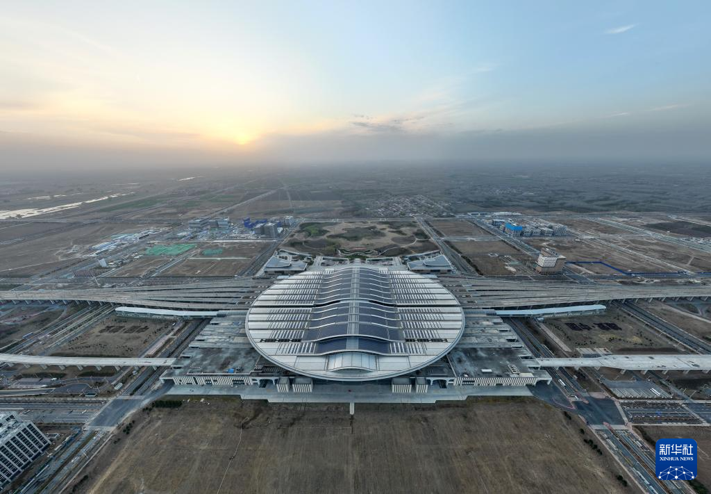 这是京雄城际铁路雄安站(3月29日摄,无人机照片)。