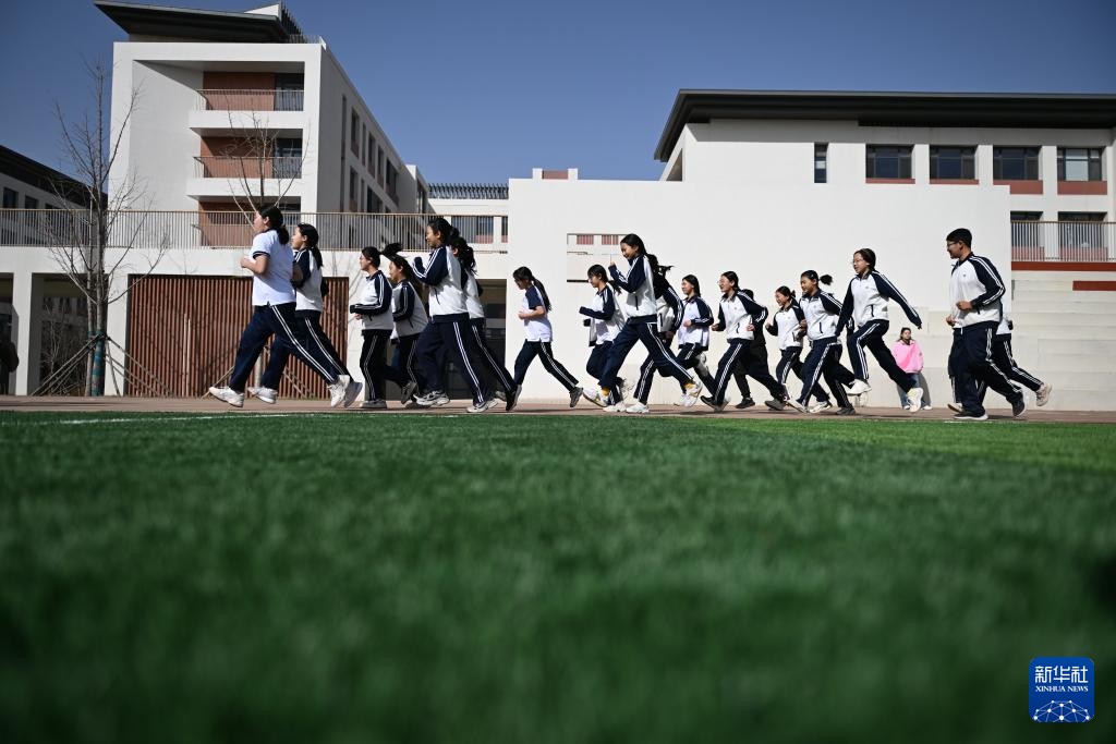 3月29日,北京四中雄安校区的学生在操场上跑步。
