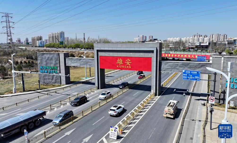 这是雄安新区雄安门(3月30日摄,无人机照片)。
