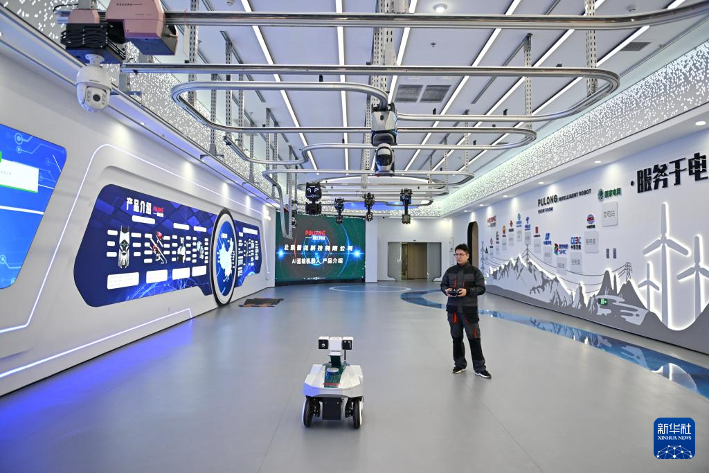 3月28日,在雄安科创中心中试基地,北京普龙科技有限公司工作人员在展示巡检机器人。