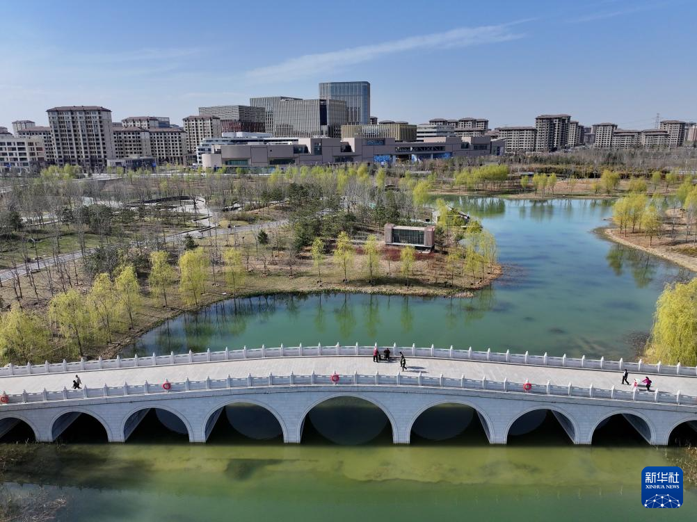 这是雄安新区金湖公园(3月29日摄,无人机照片)。