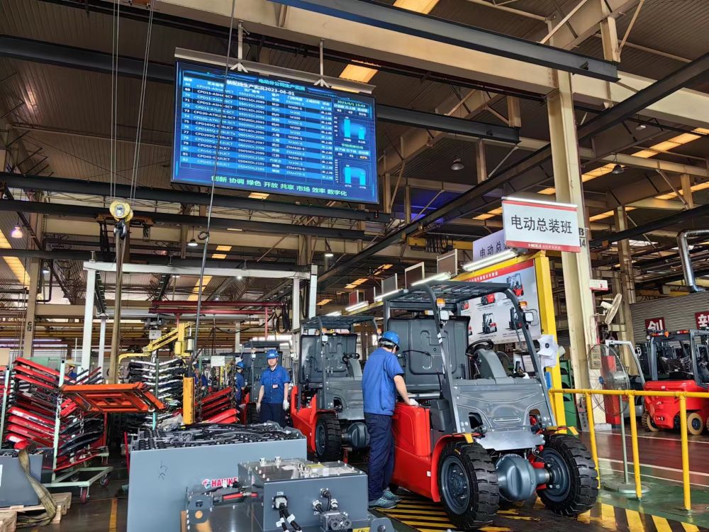 在安徽合力股份有限公司的生产车间,工人们在生产销往RCEP成员国的叉车(2023年6月1日摄)。新华社记者 汪海月 摄