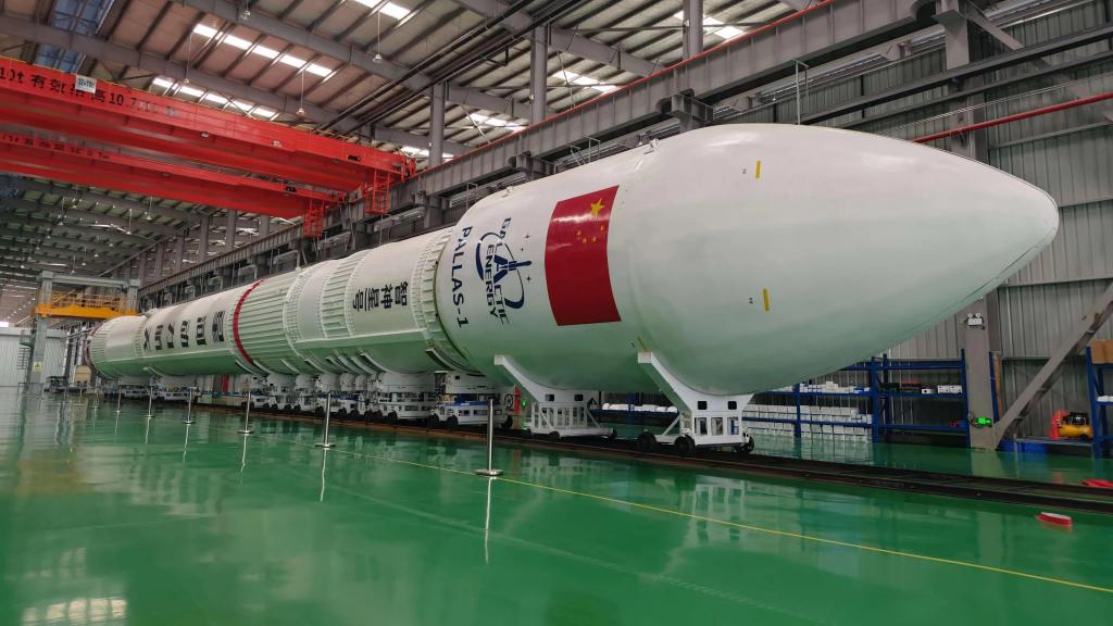 安徽星河动力装备科技有限公司整装下线的“智神星一号”液体运载火箭。新华社发(鲍勇 摄)
