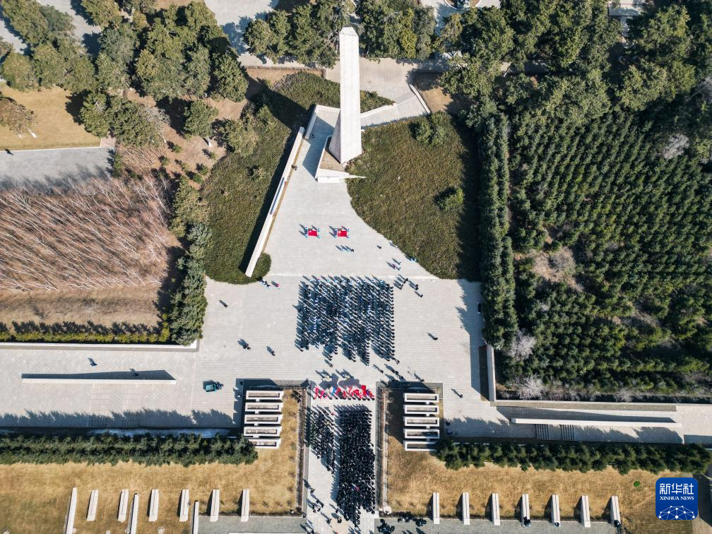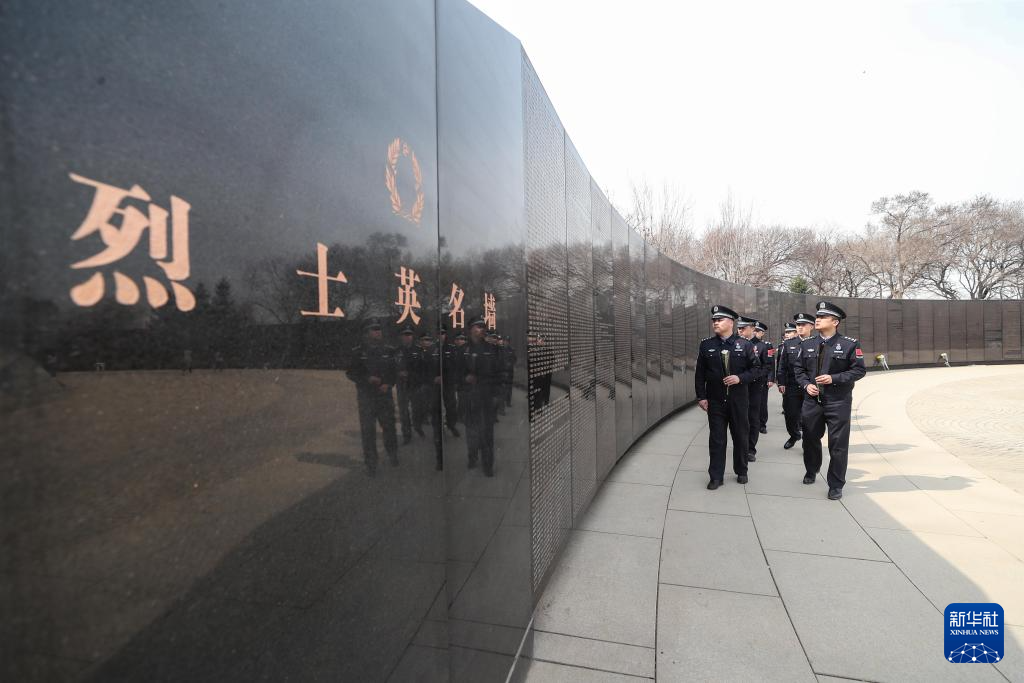 4月2日,在沈阳抗美援朝烈士陵园,沈阳出入境边防检查站民警瞻仰烈士英名墙。