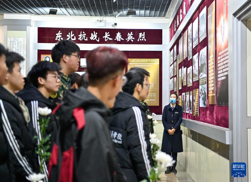 4月2日,长春革命烈士纪念馆讲解员给前来烈士陵园祭扫的学生讲述东北抗战历史。