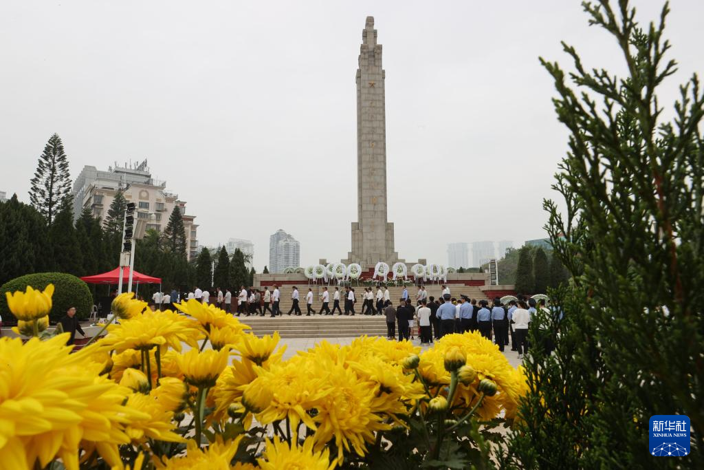4月2日,在福建厦门烈士陵园,厦门市各界干部群众在革命烈士纪念碑前开展祭奠活动,缅怀先烈。