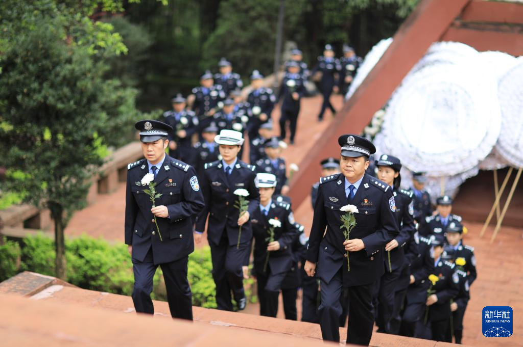 4月2日,在贵州省赤水市红军烈士陵园,民警列队向红军烈士墓献花。