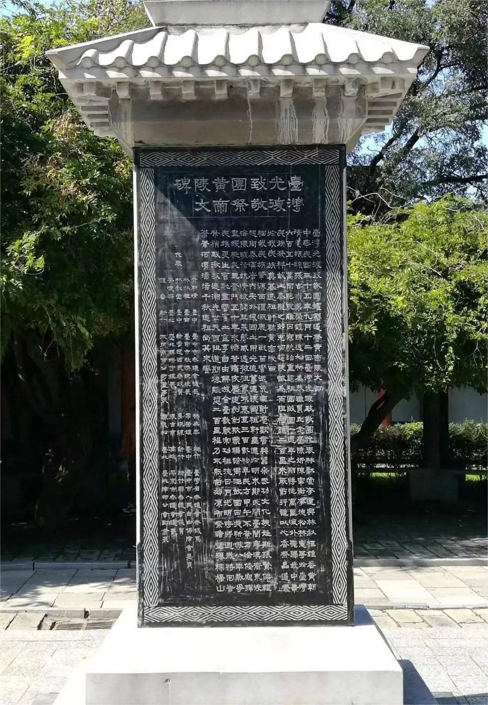1946年,台湾光复第二年,林献堂等台湾社会各界代表10余人自发组成了台湾光复致敬团,代表台湾人民前来西安等地,表达台湾重回祖国怀抱的喜悦之情。致敬团任务之一,就是“谒黄帝陵,拜告以台湾600万炎黄子孙,2300余方哩版图已归祖国,借表台湾同胞拳拳之诚”。他们起草的祭文在开篇即强调台湾“重归祖国版图”,被各界视为台湾同胞认祖归宗的宣言。60年后,致敬团成员后人把祭文纂刻立碑,矗立于轩辕庙前。