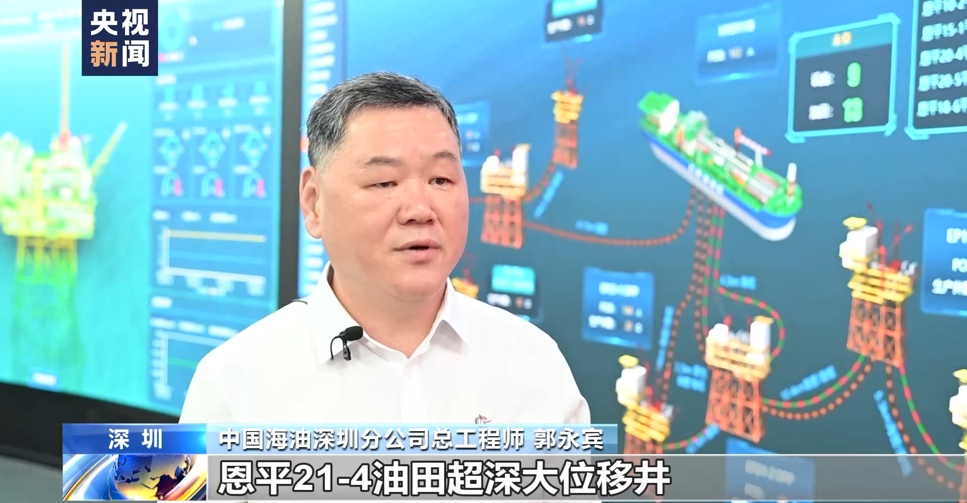 中国海油深圳分公司总工程师 郭永宾:通过技术革新和模式创新,利用8公里外的无人平台,实施超深大位移井,突破了海洋边际油田难以开发的壁垒,成功推动恩平21-4油田经济高效开发。