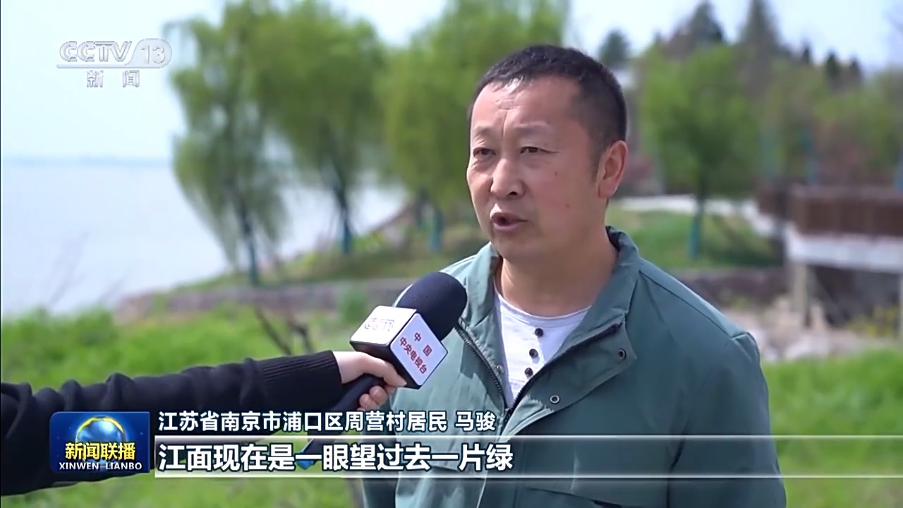 江苏省南京市浦口区周营村居民 马骏:江面现在是一眼望过去一片绿,很多的江鸟都回来了,出来散步的时候,大家都非常开心。