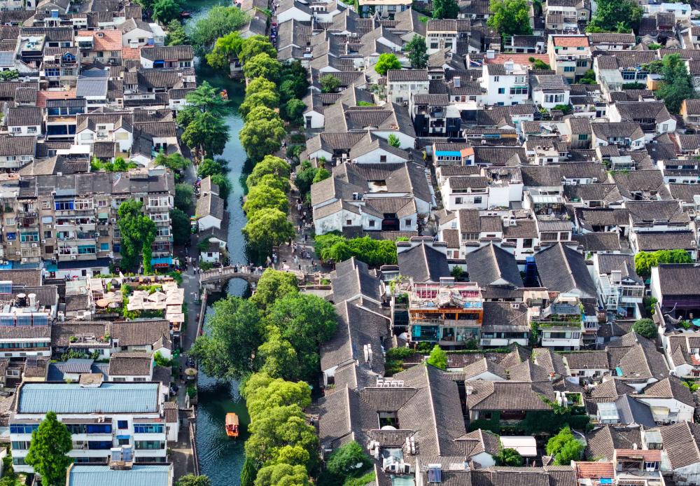 这是2023年7月3日拍摄的苏州平江历史文化街区(无人机照片)。新华社记者李博 摄