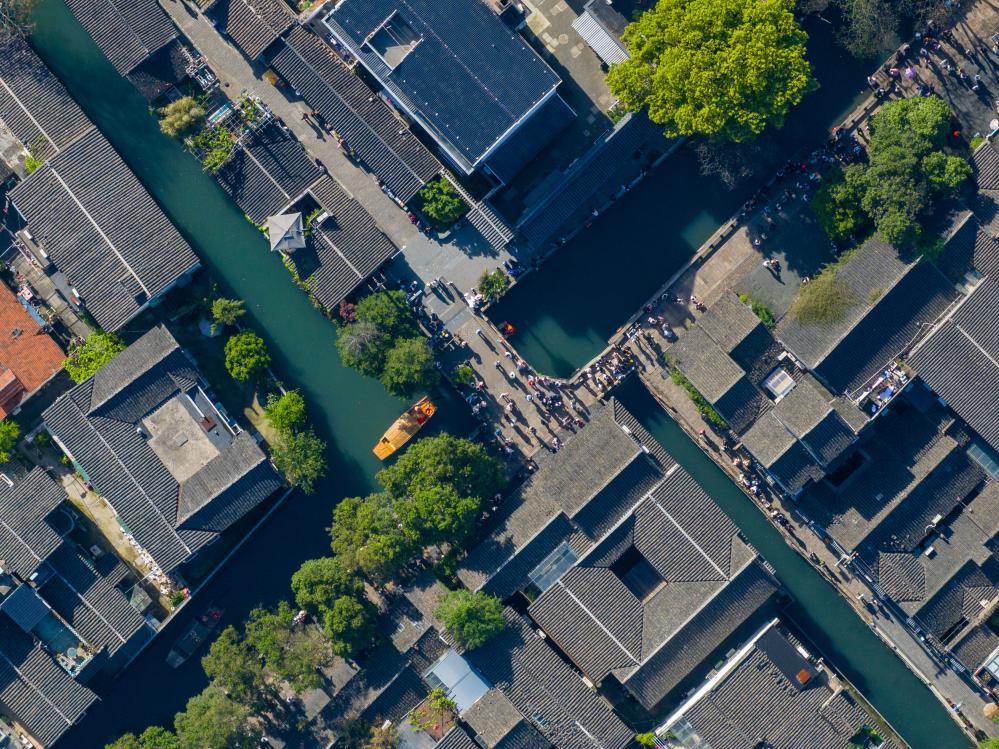 这是4月18日拍摄的苏州平江历史文化街区(无人机照片)。新华社记者李博 摄