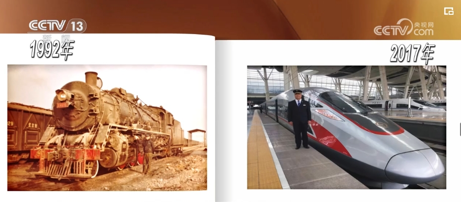 这张稍显模糊的老照片是1992年,韩军甲刚参加工作时拍下的。他身边的蒸汽机车当时的运行时速一般只能开到50公里左右,这个风华正茂的年轻人从未设想过,20多年后的2017年,他能驾驶时速350公里的复兴号列车。