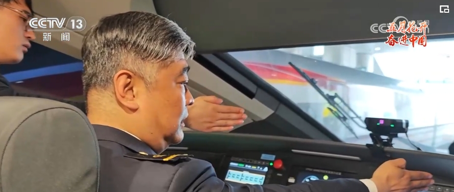 现在开车条件好了,但司机的责任一点不小。每一个动作都是在对仪表检查、信号确认、严守速度等关键信息进行确认。安全警惕系统会时刻关注司机的状态,脚踏板30秒不踩踏会声光报警,40秒不踩踏列车就会紧急制动。驾驶台前方的这个盹睡装置会一直观察司机的眼睛,闭眼超过2秒也会启动声光报警。可以说,这种强度的工作压力,没有经过严格训练的人是绝对无法胜任。