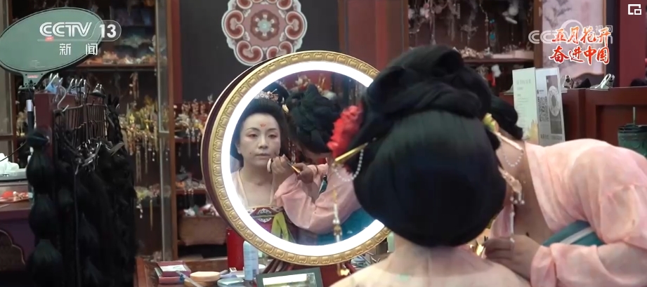 在陕西西安,有这样一位年轻人,她仿佛拥有一种复刻旧时光的魔力。敷粉、画眉、点唇,穿上汉服、戴上发饰,不到1个小时,一个现代的女孩就穿越回了汉唐。“00后”汉服妆造师胡芯银,让今人和古人在装束上相逢。