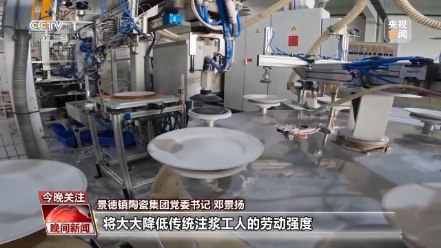 景德镇陶瓷集团党委书记 邓景扬:下一步我们也会按照新质生产力的发展方向,引进更加自动化、智能化的注浆生产线,将大大地降低传统注浆工人的劳动强度,并且大幅提升产品的效率和质量。