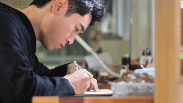 马赛在工作室内制作花丝镶嵌制品(3月19日摄)。新华社记者 李然 摄