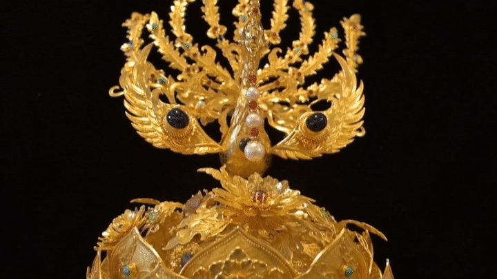 这是3月23日在天津市武清区博物馆拍摄的花丝镶嵌展览品。新华社记者 孙凡越 摄