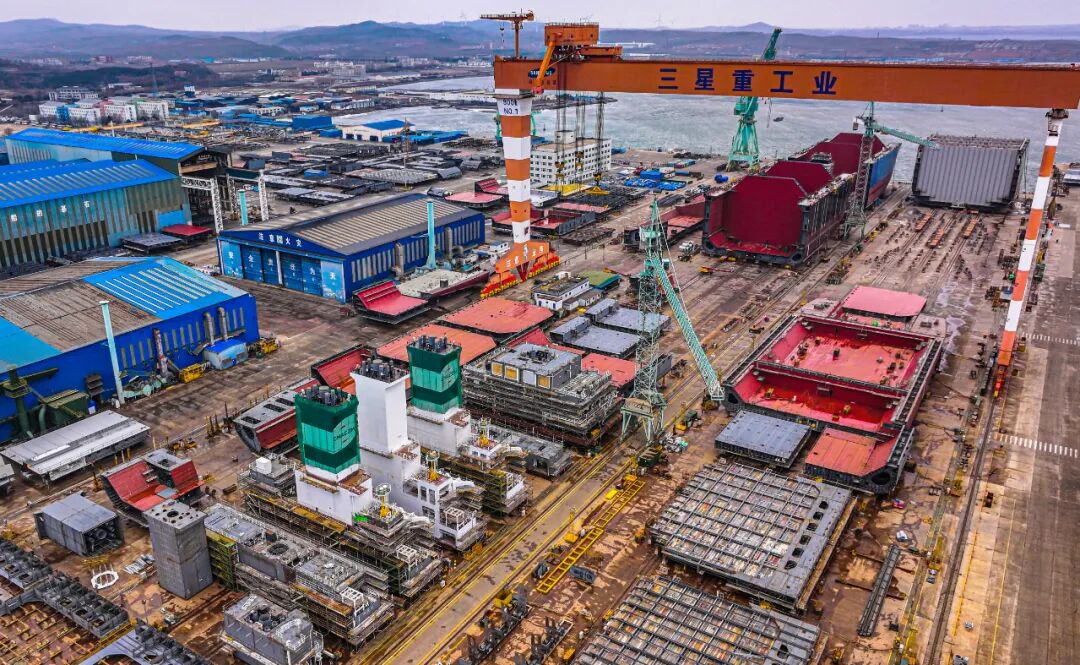 某大型液化天然气船段生产作业区(无人机照片)。李信君 摄(新华社)